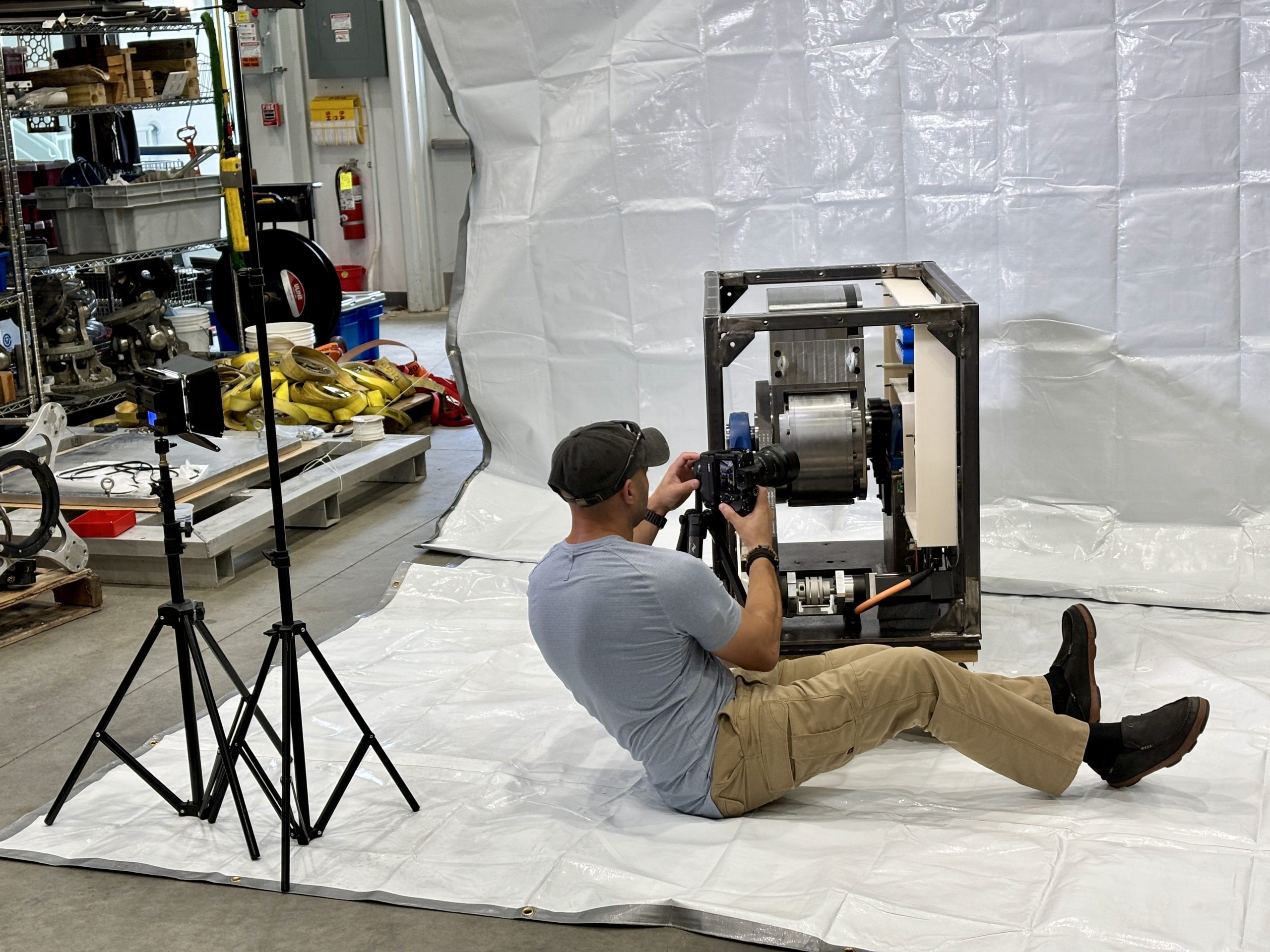 Joshua Bauer, NREL, captures still images for a 360° photographic reconstruction of WEC. © Ken Kostel, WHOI[/caption]