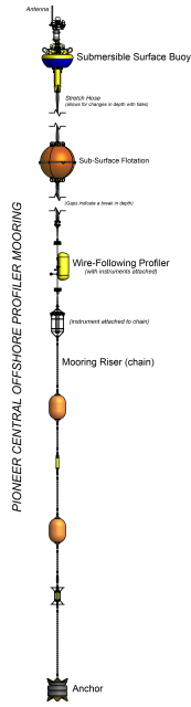 Like other Surface Piercing Profiler Moorings, this mooring contains a Surface Piercing Profiler that allows for the sampling of near surface phenomena as the Profiler travels through the water then breaches the surface. Fine resolution sampling of the water column, particularly at the very surface of the water, provide key insights into the exchange of gases, heat, etc between the atmosphere and the ocean. While on the surface, the profiler transmits data to shore.